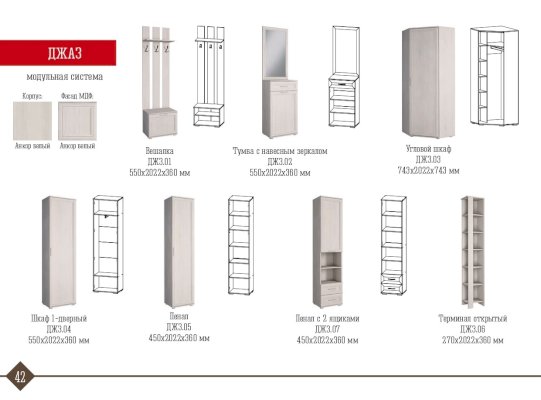 Модульная прихожая Джаз (Астрид-Мебель) – товар доступен к покупке в интернет-магазине kurganskiy-dommebeli.ru. Цена – 24 772 руб. без учета доставки. Стоимость дополнительных услуг и сроки получения мебели уточняйте у менеджера. Возможен безналичный расчет, оплата по карте на сайте.